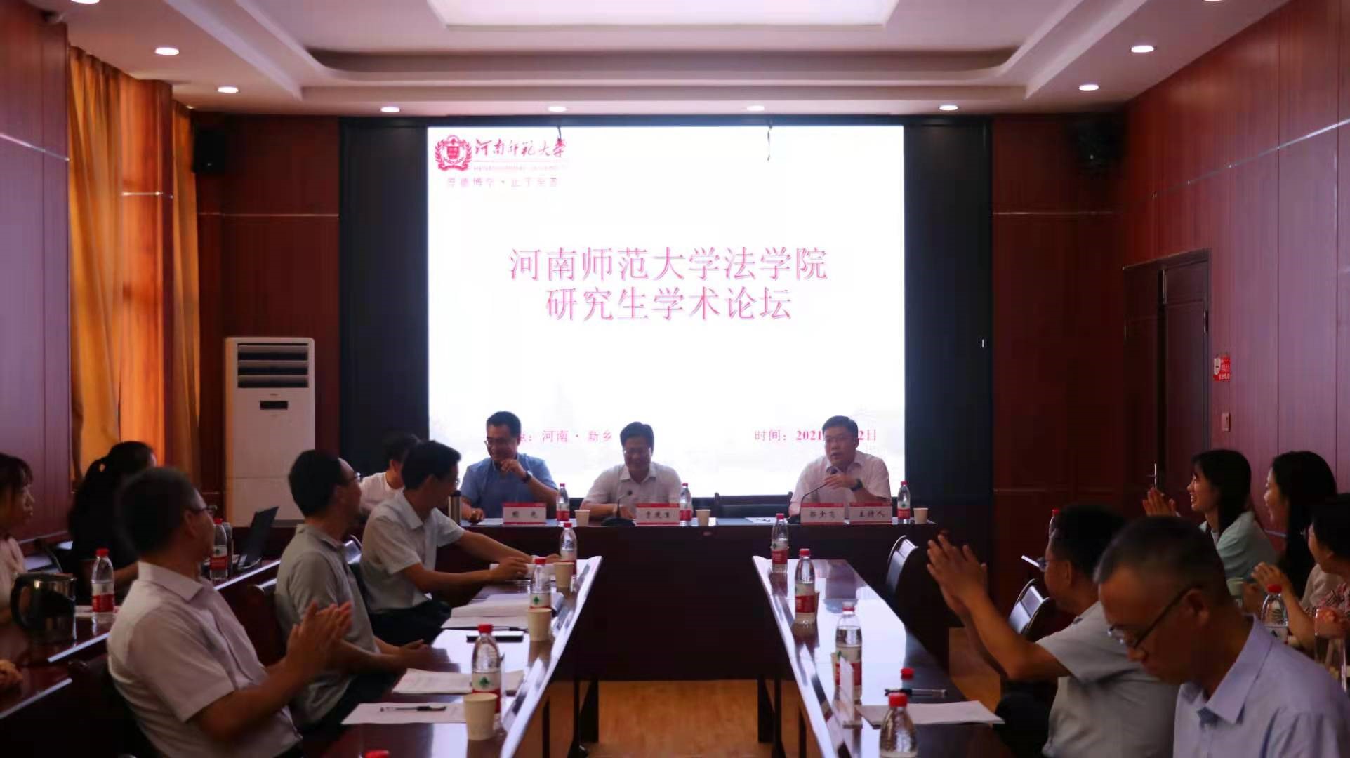 7月2日上午,河南师范大学法学院在崇法楼301教室隆重举行研究生学术论坛,我院院长于庆生、副院长胡光、副院长郭少飞、以及数名老师和2019级与2020级全体研究生参加,会议由我院副院长郭少飞主持。