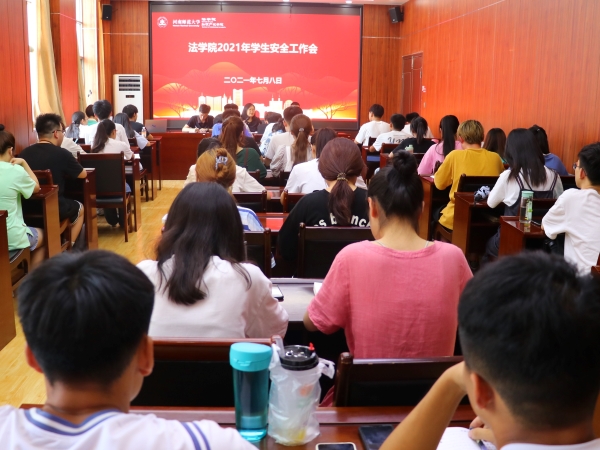 为认真贯彻落实国家关于加强学校安全管理工作的精神,引导本院学生树立安全意识,建立健全安全机制,协力构建和谐校园,7月8日下午,法学院于崇法楼301室召开了学生安全工作会,会议由学院党委副书记田月红老师主持,参加会议的有各年级辅导员和团委、学生会及班委会等学生代表。