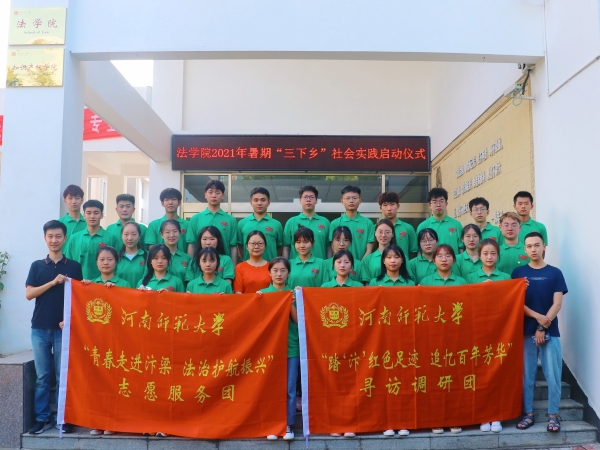 奋进百年路,青春向党行。7月12日上午,法学院2021年大学生暑期“三下乡”社会实践活动启动仪式于崇法楼举行。法学院党委副书记田月红老师、“青春走进汴梁,法治护航振兴”志愿服务团指导老师赵东方老师、“踏‘汴’红色足迹,追忆百年芳华”寻访调研团指导老师陈宇翔老师及实践团队全体队员参加了仪式。启动仪式由法学院团委副书记陈宇翔老师主持。