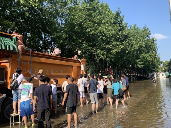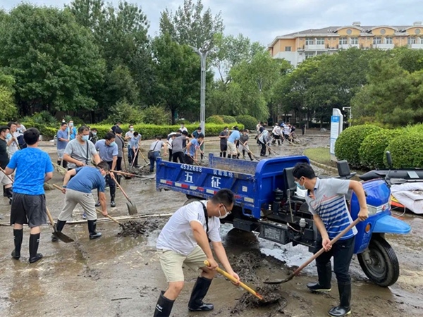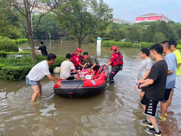 师生安全是抗洪抢险的重心,面对严峻的险情,学院领导班子第一时间动员学院一切力量,为留校学生采集矿泉水、方便面等5000余元的生活物资,组建防汛突击队2支和志愿服务队3支,全面投入抢险救灾工作。学院紧急组织积水严重区域的学生以“点对点、人对人”的方式进行安全转移,领导老师及时深入宿舍慰问,尽力解决留校学生的实际困难。由我院广大党员干部组成的防汛突击队始终坚守在防汛一线,通过架设抢险设备,排涝除险,全力抢修基础设施,以确保供水排污系统正常运转。经多方联系,我院筹集到10余套下水裤,保证了突击队员夜间下水搬动抽水设备,并组织安排人员轮班值守,发扬连续作战精神,科学开展防汛救灾工作。针对不实网络信息,学院不断加强宣传教育,引导学生不信谣、不传谣,听从安排,避免造成不必要的恐慌。险情之下,我院多名留校学生以保障自身安全为前提,有序加入抗洪工作,搜集救援信息,与学院老师一起搬运沙袋、分发物资,助力打赢防汛救灾保卫战。随着抗洪形势逐渐好转,学院即刻投入到校园清洁消杀工作中,竭力营造平安有序的校园环境。