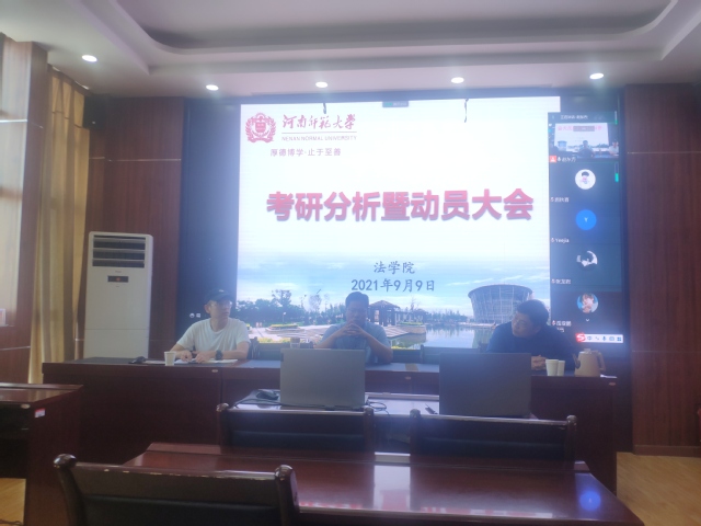 为帮助2018级学生提高考研积极性,解决备考过程中遇到的困惑与难题,明确个人未来发展目标,9月9日下午,法学院借助“腾讯会议”线上召开了考研分析暨动员大会,学院院长于庆生、副院长郭少飞、研究生秘书徐晓以及2018级全体学生共同参与。会议由2018级辅导员赵东方主持。