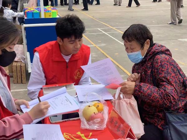 活动前期,志愿队员结合实际情况,通过查阅资料等方式搜集整理各种家属院居民可能需要的法律条文,为法律咨询活动的顺利进行做出了充分的准备。活动开始前,工作人员们明确分工,各司其职,精心布置普法宣传点,并对现场氛围进行预热,吸引了众多居民驻足观看。活动过程中,队员们向居民们发放宣传页,并结合社会热点案例以及相关法条,为居民们耐心细致地讲解了“农村宅基地转让纠纷”、“仅有支付凭证不足以证明借贷关系”和“老年人依法享有婚姻自由权利”等方面的法律知识。对于居民们提出的相关问题,志愿队员充分调动所学的专业知识,尽心尽力为其答疑解惑,扫除法律盲点。除此之外,法律咨询工作人员也为退休教职工们送去了温暖问候与水果礼品,表达了广大师生对退休教职工的深切关怀。在各方的共同努力下,本次活动顺利结束,并取得了良好的宣传效果。
