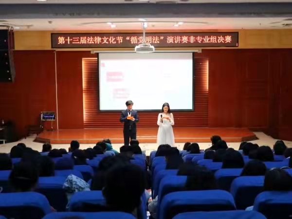 为弘扬习近平法治思想,激励当代大学生以党史为鉴,提高同学们学党史、悟思想的能力,11月21日,法学院于模拟法庭举办第十三届法律文化节系列活动之“循党明法”演讲赛非专业组决赛。六个学院近300名同学参与此次活动。