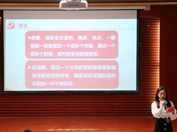 本次活动围绕“追忆党史,与法同行”的主题,各学院参赛人员依据知识产权方面的相关法律,针对当今热点法治事件,将自身专业与法治发展相联系,选取特色主题,结合精心制作的PPT展开演讲。比赛现场,参赛选手或慷慨陈词或娓娓道来,以精炼的语言、严密的逻辑、独到的观点从不同角度剖析典型案件、讲解案例背后的法律知识,同时联系中国共产党百年奋斗历程、习近平法治思想和近期国家发展政策,解读我国法治的发展历程,分享自己对法治建设的思考。其中,一号选手创新演讲形式,通过角色演绎的方式,从古今两种不同的视角分析了知识产权的重要性,表达了自己对于法治发展的认识。中场环节,为增强在场观众对于我党法治百年奋斗历程的理解,活动负责人播放“百年奋斗”剪辑视频,增强了活动的感染力。经过激烈的角逐,最终文学院选手任志航获得本场比赛“红色法治文化守卫先锋”荣誉称号。