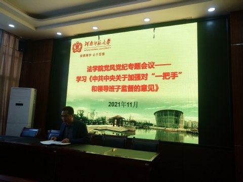 11月23日下午,法学院党委在崇法楼301会议室召开2021年党风党纪专题教育学习活动。学院全体教职工参加会议,会议由学院党委书记张壬主持。