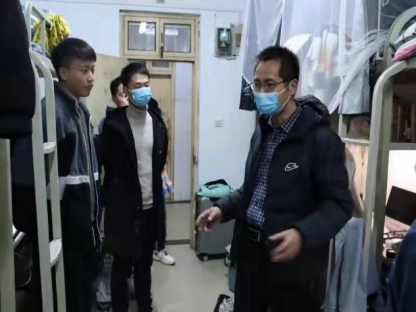 12月21日,法学院开展冬至暖心慰问活动。法学院领导班子全体成员、党员教师和班主任深入教室和学生宿舍,对正在备考的同学们表示慰问与鼓励,并发放防疫物资。