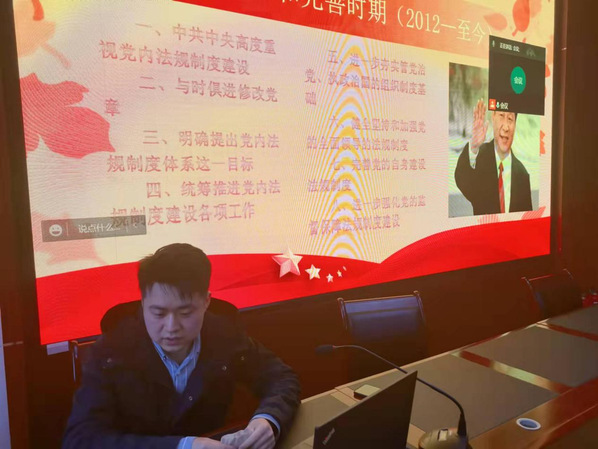 讲座伊始,毕昆同学首先从国内第一本“党内法规学”开始讲解,阐述了“新兴之火”的内涵。随后又从党内法规的一般原理、党内法规的历史发展、党内法规的制定、1+4的党内法规体系框架及其内容、全面依规治党五个方面出发系统地讲述了党内法规的特征、发展背景与学科归类等内容。使得同学们理解了党内法规这样一门横跨法学、政治学、党建学等多学科的综合性课程所具有的政治性、规范性、权威性。讲座最后,毕昆同学认为要坚持依规治党和依法治国的有机统一,应做到治国必先治党、治党务必从严、从严必依法度。