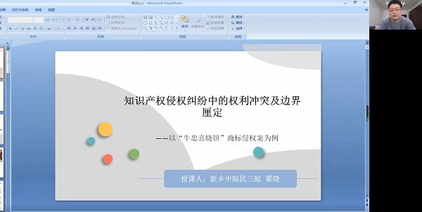 近年来,随着社会生活的不断发展,知识产权侵权行为时有发生。翟法官以“牛忠喜烧饼”商标侵权纠纷这一典型案例为切入点,对涉及商品商标与服务商标、非物质文化遗产冲突的问题,不正当使用服务商标、非物质文化遗产侵权等问题,进行了深入讲解。河南地方风味小吃、名优特产品较多,非物质文化遗产丰富,法院通过厘定各项权利的边界,解决权利冲突,对于正确保护我省地方风味小吃、名优特产品和非物质文化遗产有引领作用。本次课程圆满结束,但小小的烧饼却引起了同学们大大的思考。