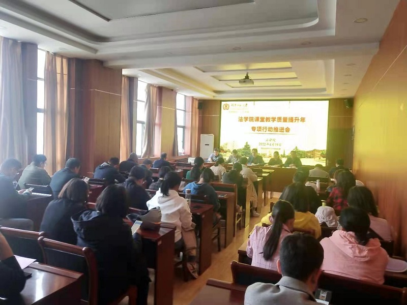 为扎实推进“能力作风建设年”活动,贯彻落实学校“课堂教学质量提升年专项行动”,深化本科教育教学改革,全面提升课堂教学质量和育人水平。4月19日下午,法学院于崇法楼301会议室召开“课堂教学质量提升年专项行动推进会”。法学院党委书记张壬、院长于庆生出席会议,学院全体教职工参加会议。会议由教学副院长胡光主持。