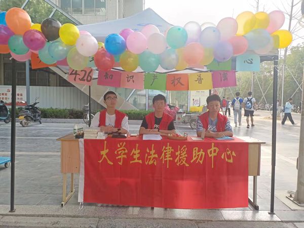 为深入宣传知识产权保护相关法律知识,提高广大学生知识产权保护意识,4月26日,法学院联合大学生法律援助中心于学苑餐厅西南角举办“4•26世界产权日”普法宣传活动,我校部分学生参与此次活动。