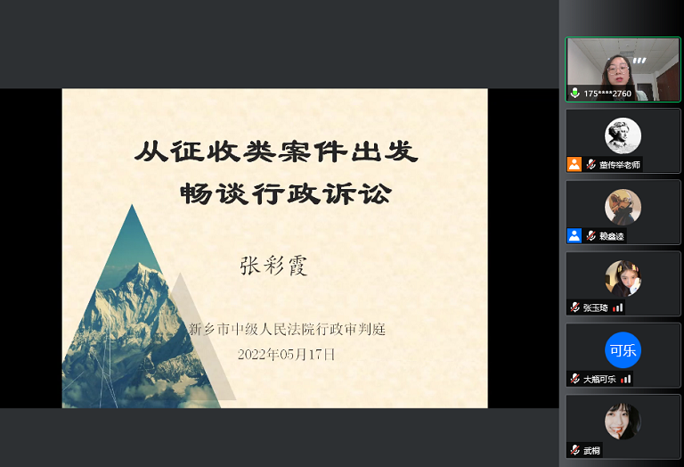 5月17日,法官实务课程迎来第十讲。本次课程的主讲人为新乡市中级人民法院行政审判庭副庭长张彩霞法官,她以《从征收类案例出发畅谈行政诉讼》为主题,为同学们带来了生动的一课。