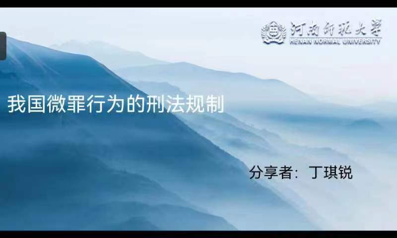 5月30日上午,我院在线上举办了第【22053022】期文化沙龙活动。丁琪锐同学以“我国微罪行为的刑法规制”为主题展开了学术研讨,80余名研究生参加了此次活动。