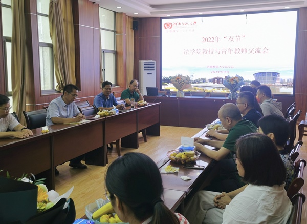 2022年9月9日下午,在教师节和中秋节“双节”来临之际,法学院召开教授与青年教师座谈会。法学院全体教授、青年教师及班子成员参加此次交流活动。座谈会由副院长郭少飞主持。