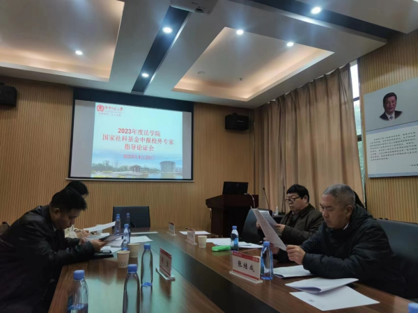 为做好2023年度国家社科基金申报工作,近日,法学院在崇法楼三楼303会议室召开国家社科基金申报校外专家指导论证会。中国法学会法理学研究会副会长、上海师范大学法治与人权研究所所长刘作翔教授,中国法律逻辑专业委员会会长、中南财经政法大学法学院张继成教授,郑州大学法学院王立志教授,校社会科学处处长段勃、副处长刘新争,学院领导班子、申报教师及部分研究生参加此次会议。会议由学院副院长郭少飞主持。