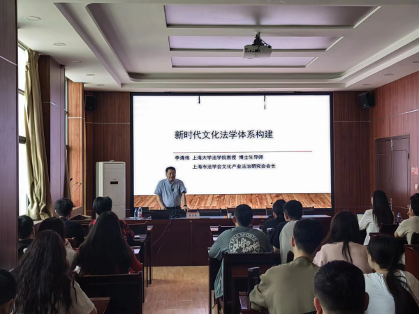 5月8日下午3点,上海大学博士生导师李清伟教授应邀在法学院301作题为“新时代文化法学体系构建”的学术讲座。本次讲座由法学院副院长胡光主持,法学院百余名师生参加。