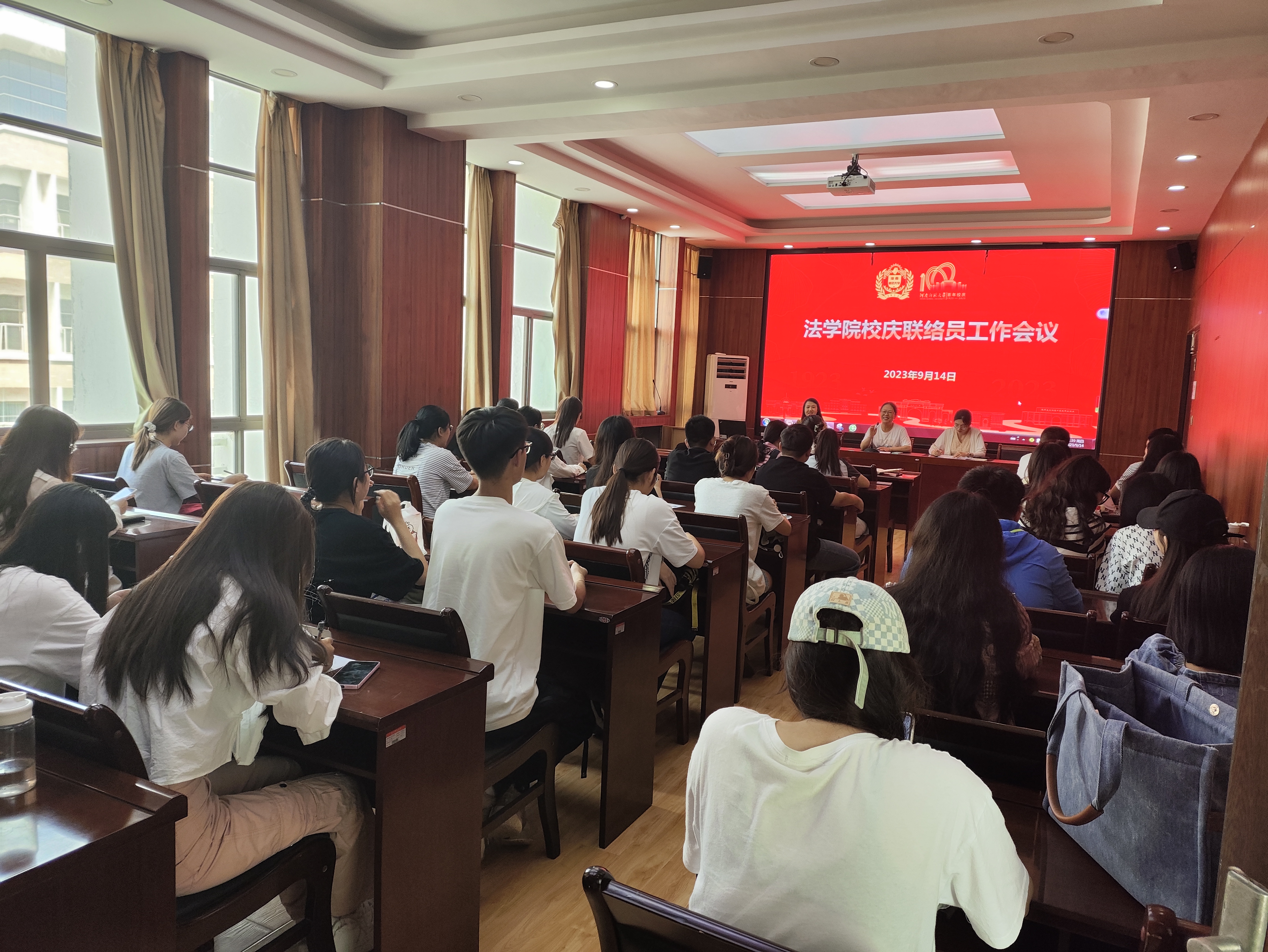 9月14日中午,法学院于崇法楼301会议室召开校庆联络员工作会议,学院党委副书记田月红、副院长史春花、教师联络员与学生联络员等50余人参会。