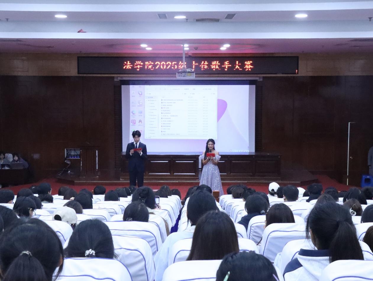 为丰富法学院学子的课余生活,鼓励学生多元发展,营造积极向上的校园文化氛围,一场十佳歌手决赛于2025年10月22日在模拟法庭温情开唱。本次活动面向2025级全体本科生,选手们用过硬的唱功带来一场音乐盛宴。