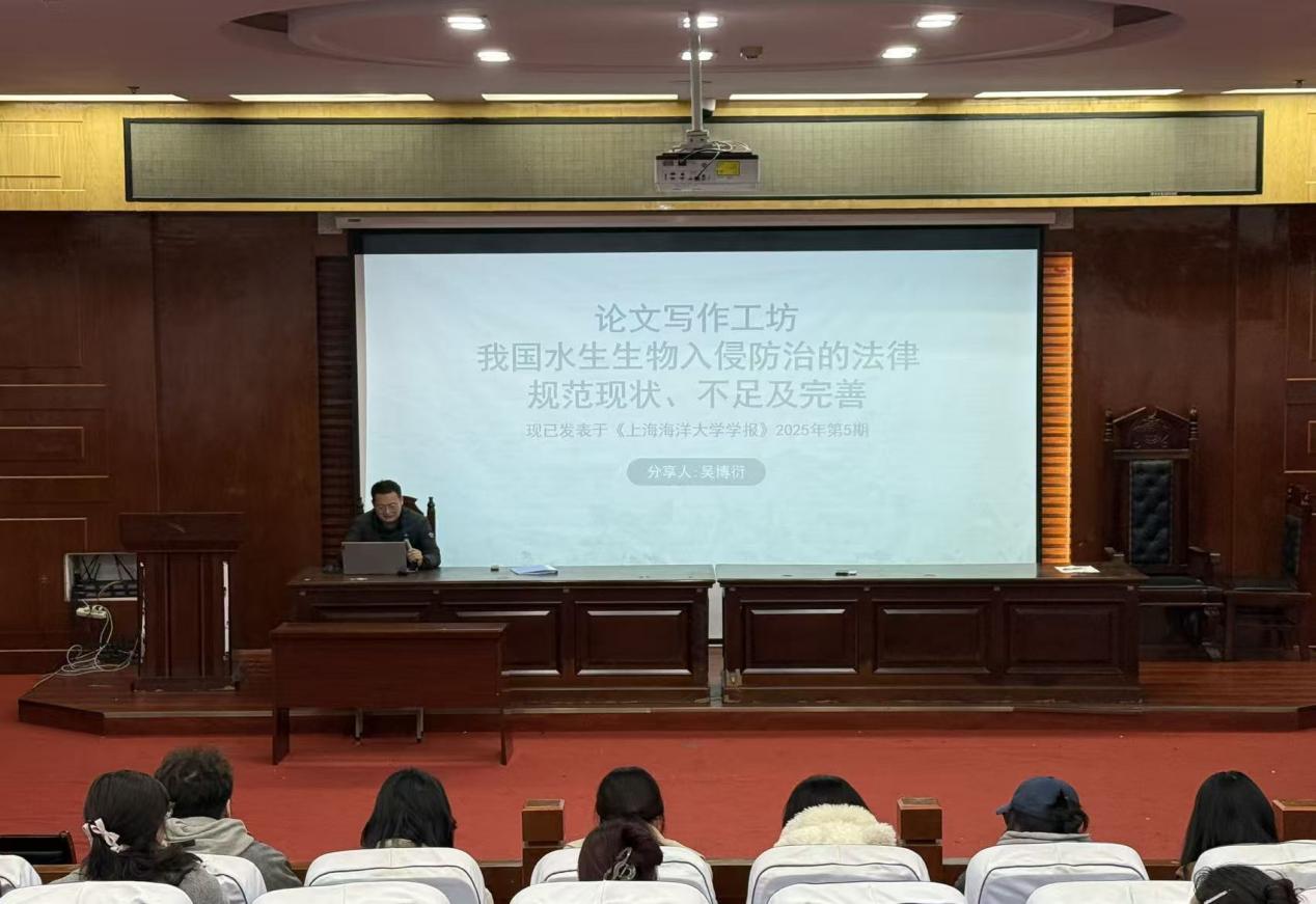 10月24日下午,法学院研究生党支部举行第二十四期论文写作工坊,本期讨论的论文题目是《我国水生生物入侵防治的法律规范现状、不足及完善》。