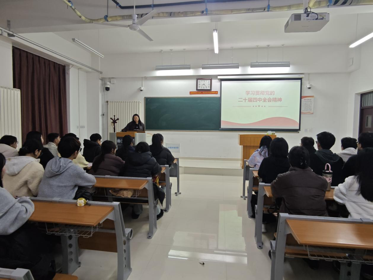 为深入学习领会党的二十届四中全会精神的重大意义和核心要义,引导学生筑牢思想根基、明确使命担当,11月20日晚,法学院笃行党支部在文昌楼109教室组织召开党的二十届四中全会精神专题学习会议。会议由支部书记王亚楠主持,支部全体成员、2024级本科学生干部共50余人参会。