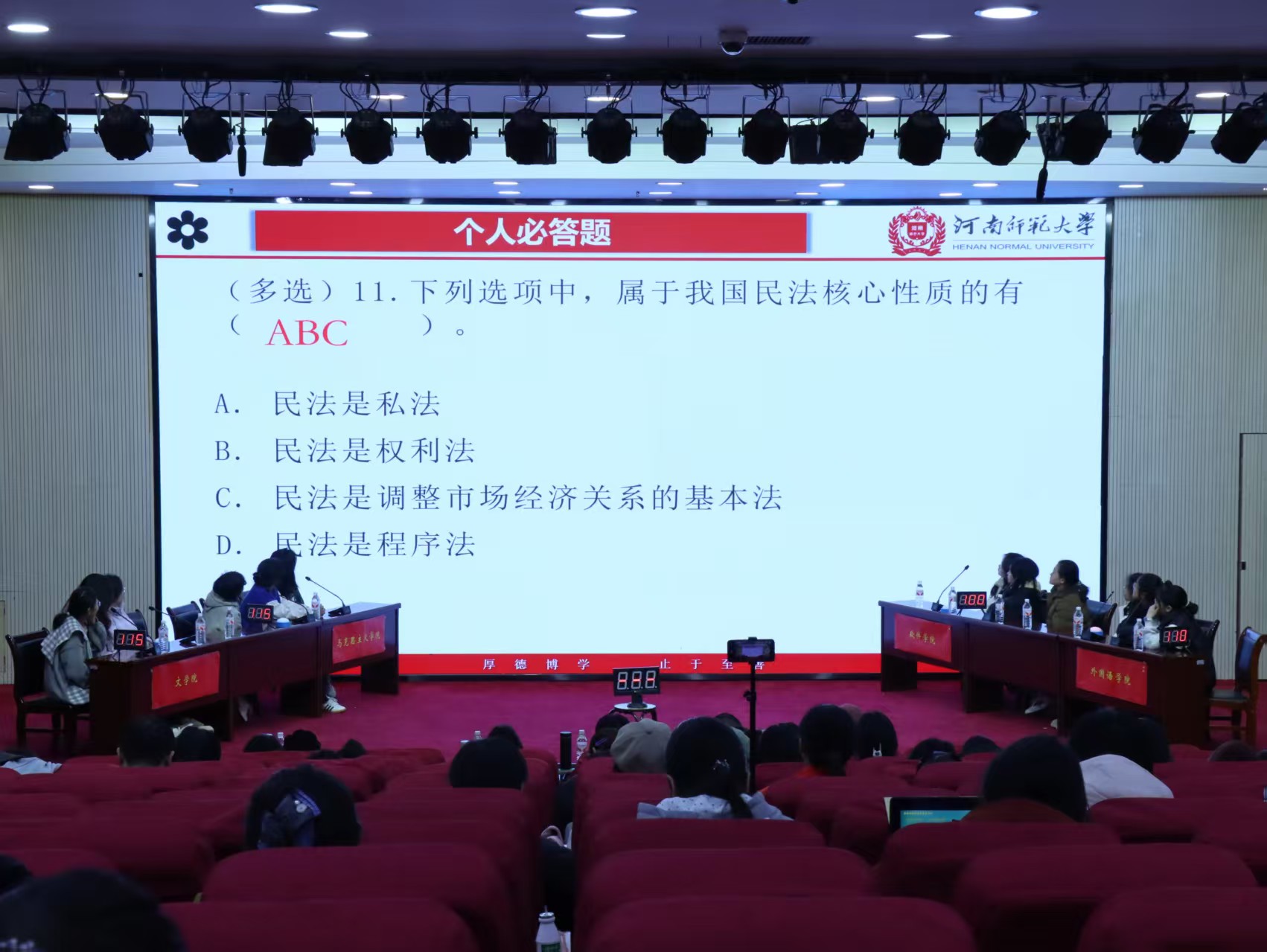 为提升学生法治素养,增强学生的法律应用能力,11月23日上午,由党委学工部、法治宣传教育工作领导小组办公室主办,法学院承办的第十七届法律文化节之“守安固本,竞逐新知”法律知识竞赛决赛在思政平台举行。