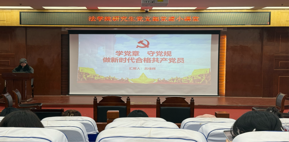 12月5日下午,法学院研究生党支部“党建小课堂”第四十八讲开讲,2024级法律非法学班吕佳辉和2024级法律非法学班杨佳馨分别以《学党章 守党规 做新时代合格共产党员》《弘扬沂蒙精神 传承红色基因》为题开展分享。