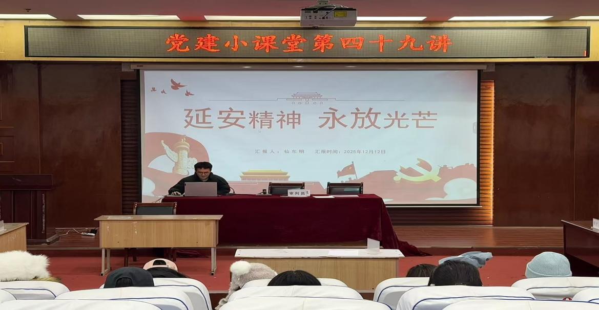 12月12日下午,法学院研究生党支部“党建小课堂”第四十九讲开讲,2024级法学班仙东明和2024级法律法学班高英杰分别以《延安精神,永放光芒》《弘扬载人航天精神,砥砺奋进伟大征程》为题开展分享。