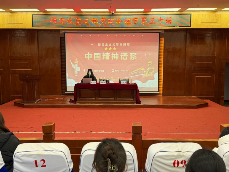 12月19日下午,法学院研究生党支部“党建小课堂”第五十讲开讲,2024级法学班梅佳雨和李丽洁以《中国精神谱系》为题开展分享。
