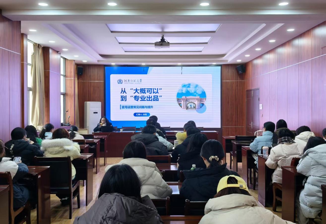 为进一步提升学院新闻宣传实效,12月27日,法学院于文昌楼106教室和崇法楼301会议室开展融媒体技能提升系列培训。本次培训分别邀请了党委宣传部《河南师大报》编辑部办公室副主任石晓倩、新闻宣传科科长陈锐、新媒体科副科长白雪,法学院融媒体中心全体成员、各年级学生骨干参与,培训由院团委书记陈宇翔主持。