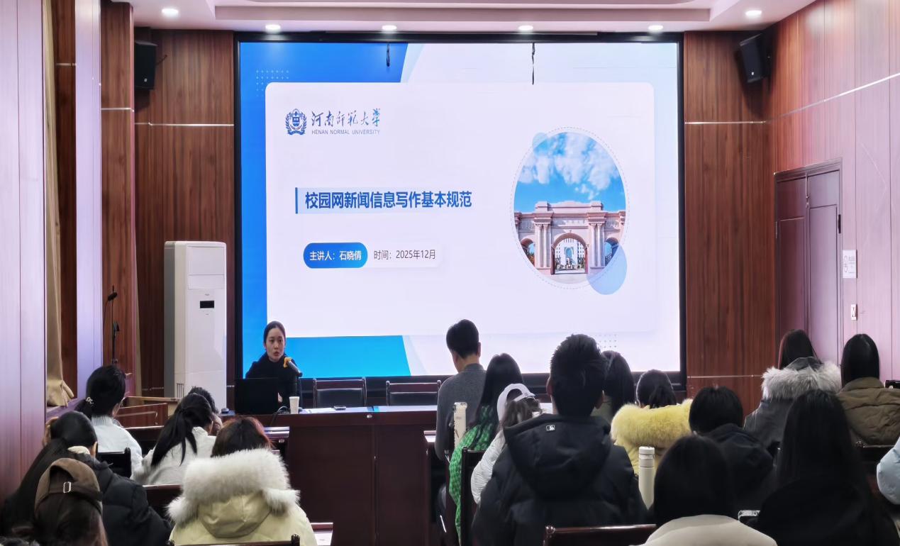 培训共分三场,围绕公务摄影、新媒体运营及新闻写作等核心内容展开系统教学,内容丰富、针对性强。陈锐聚焦公务摄影实操经验,结合大量图片,详细讲解了会议、授课、跟拍等常见场景的拍摄要点,通过正反案例对比,突出“构图”“光线”等核心技巧,并提醒同学们注意拍摄礼仪与前期准备,帮助参训人员掌握拍摄要点。白雪以“从‘大概可以’到‘专业出品’——官号运营常见问题与提升”为核心主题展开分享,提出了解账号的定位是宣传的前提,并针对校园官号特性讲解吸睛方法与运营手段,以优秀校园宣传案例为例,分析如何打造有温度、有共鸣的官号内容。石晓倩以“校园网新闻信息写作基本规范”为题,从新闻的信息范围、基本要求、常见类型等方面展开,梳理了会议新闻、活动新闻等常见类型的写作模板,通过典型案例点出要素缺失,逻辑混乱等常见问题,帮助成员们夯实新闻写作基础。