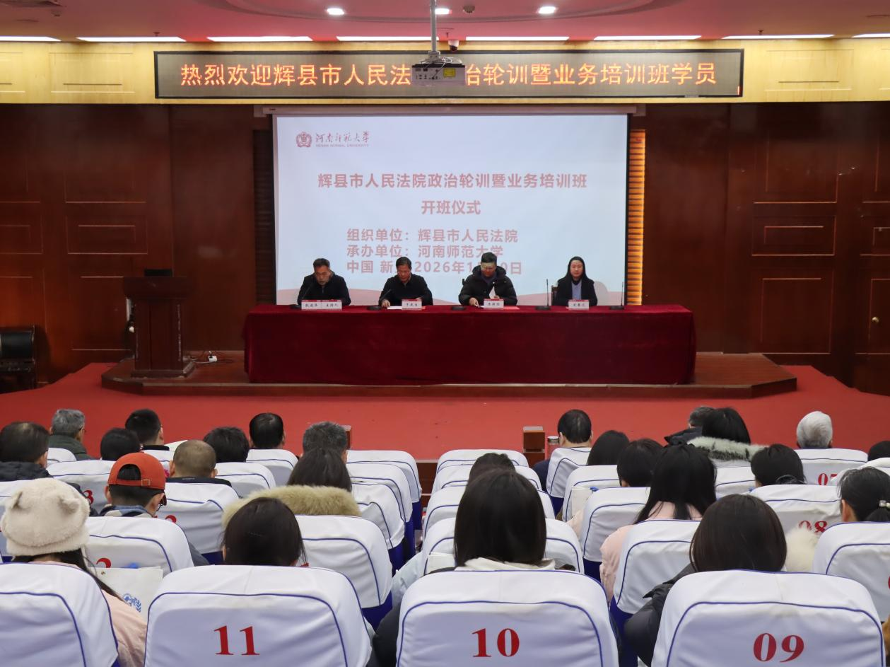 1月10日上午,辉县市人民法院政治轮训暨业务培训班开班仪式在模拟法庭顺利举行。辉县市人民法院党组成员、政治部主任王新恒,法学院相关负责人、辉县市人民法院参训学员及学院教师代表出席仪式。仪式由法学院副院长耿建泽主持。