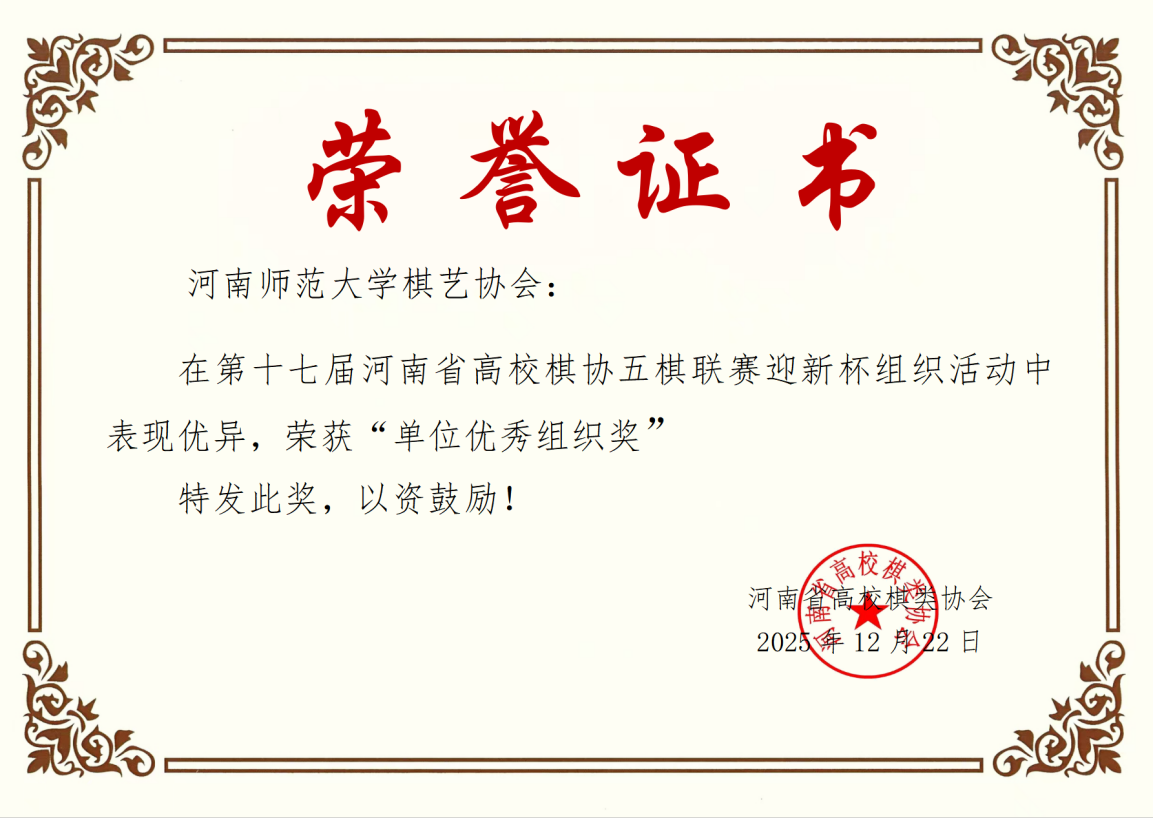 依托过往积淀,协会形成成熟的发展体系,战绩斐然。协会已在河南省第十七届高校棋类联赛中斩获团体与个人优秀组织奖,成员潘冠臣先后拿下世界五子棋青少年杯冠军、河南省第十五届高校棋类联赛总决赛全胜冠军、河南省社区运动会全胜冠军,在全国五子棋总决赛中位列第七名并成功授二段,殷一鸣、撒宏元、周江航等成员也在省级赛事中取得优异成绩,这份亮眼答卷为新学期活动的开展奠定了坚实基础。