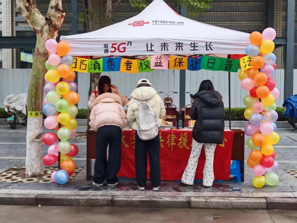 面向全校师生的普法活动以“守护消费安全,共筑诚信家园”为主题,同日在校园内开展。活动现场设置普法宣传摊位,工作人员向过往同学发放宣传页,结合校园消费场景,讲解预付消费陷阱、虚假宣传识别、个人信息保护等实用知识。为增强普法趣味性和互动性,活动还设置了消费者权益保护主题趣味游戏,同学们在轻松的游戏体验中学习法律知识,加深对消费维权的理解。新颖的活动形式吸引了众多师生参与,现场氛围热烈,有效强化了大学生的理性消费和依法维权观念。