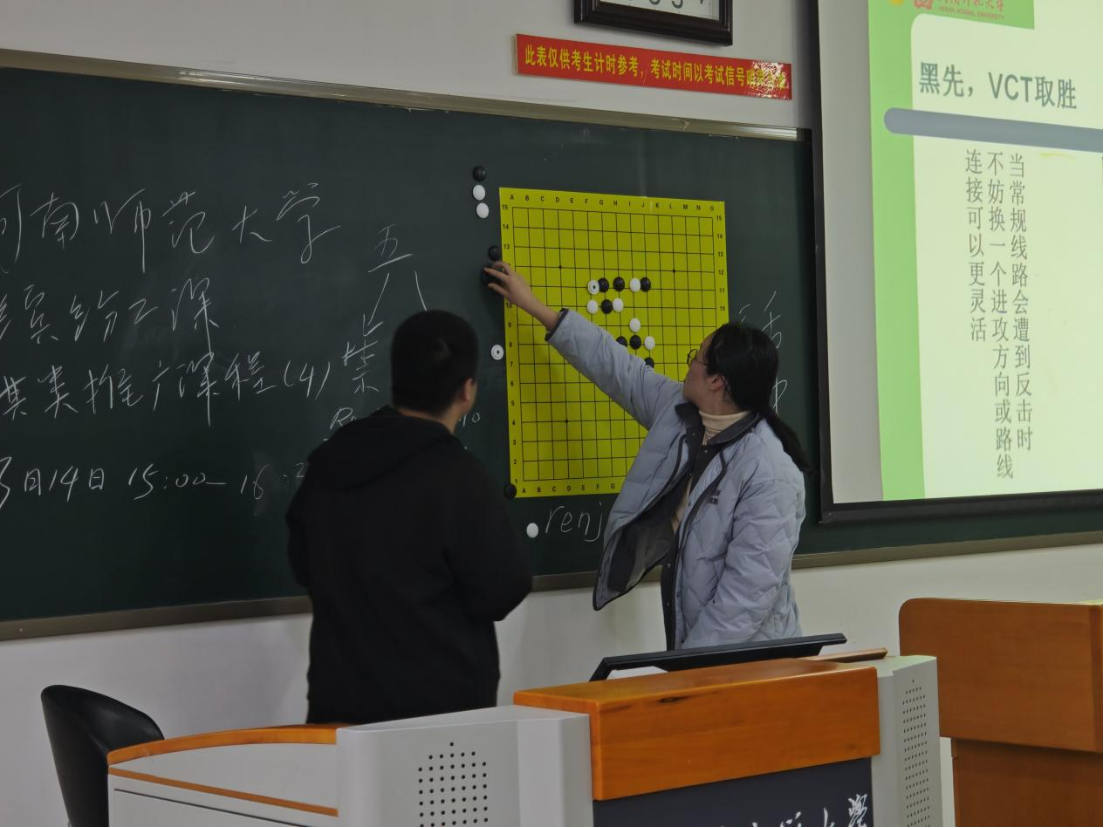 为了丰富第二课堂活动形式,推广普及棋类文化,河南师范大学“步步为营,以智慧心”缤纷二课棋类推广课程(4)于3月14日在文昌楼111教室顺利开展。本次课程围绕五子棋驳论与五子棋比赛指南展开,特邀五子棋职业二段潘冠臣担任主讲嘉宾,吸引众多棋类爱好者到场学习。