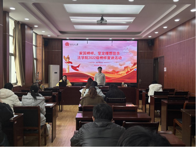 为深入贯彻落实学风建设工作相关要求,充分发挥榜样引领作用,引导青年学子厚植家国情怀、坚定理想信念,3月25日下午,法学院在崇法楼303教室举办“家国榜样,坚定理想信念”主题宣讲会。本次宣讲会邀请法学院2022级优秀学生代表郜凯强担任主讲人,分享其将个人理想融入国家发展的心路历程与成长感悟。