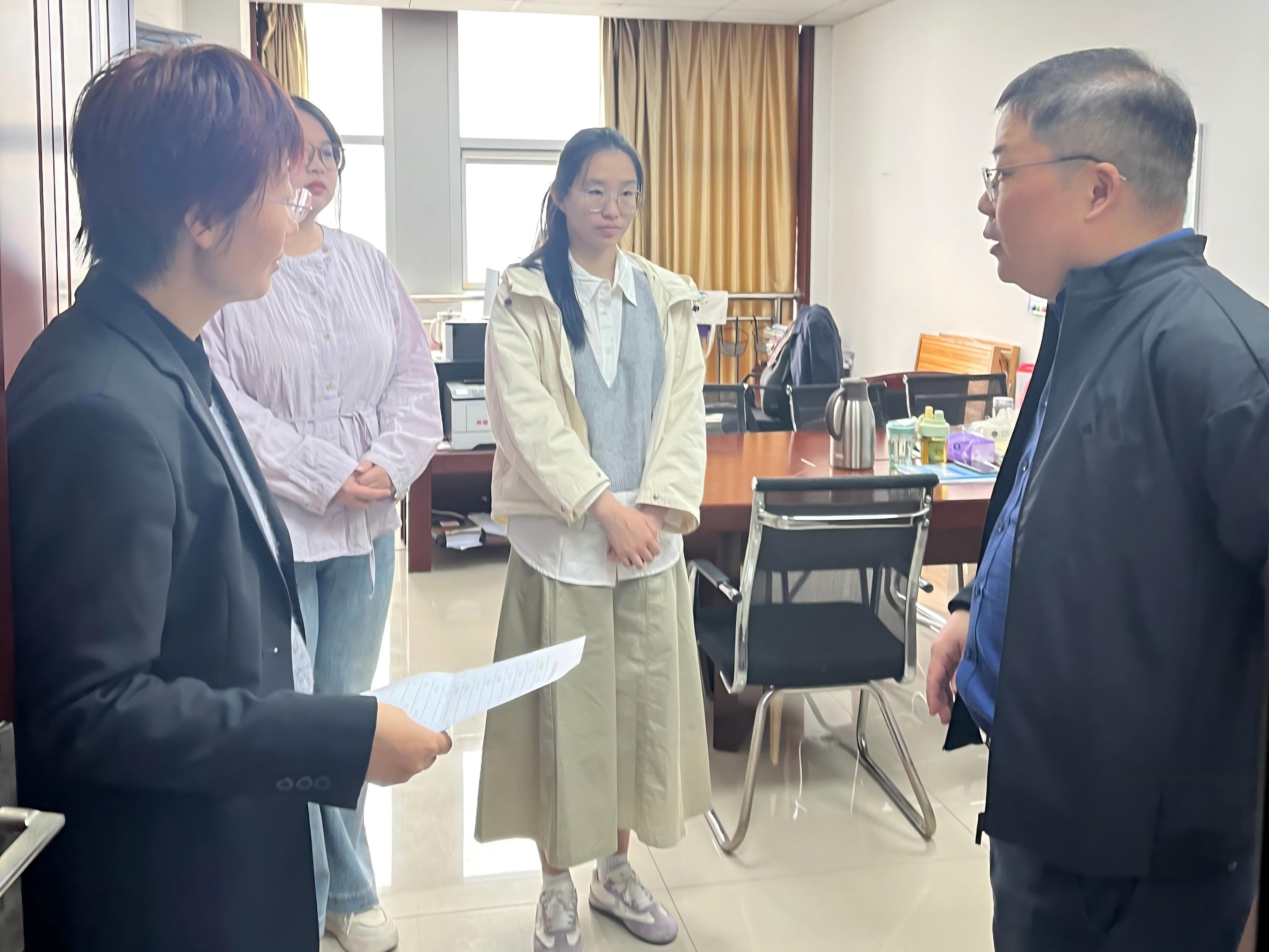 4月13日上午,法学院副院长郭少飞、胡光等一行4人前往新乡市中级人民法院走访看望法律硕士专业实习生。
