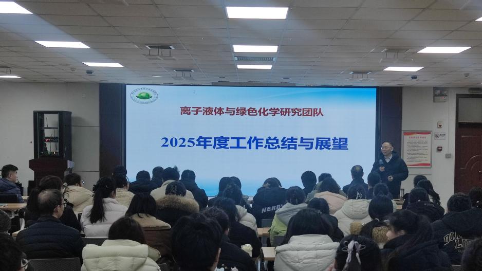 2026年2月9日,离子液体与绿色化学研究团队在化学北楼五楼会议室召开2025年度工作总结会,团队全体师生参与了会议。会上,王键吉教授介绍了2025年新加入团队的教师、学生和毕业生情况,总结了团队在研和新取得的基金项目、发表论文数量、论文引用情况和团队成员在学会、期刊和会议的任职情况,明确了团队当前存在的问题和未来努力的方向,并对2026年度学术交流、基金申报、论文发表等工作进行了展望。王老师详细介绍了团队的发展情况,从热力学基础研究到当前在离子液体、绿色化学和热力学的交叉前沿领域,团队取得一定的成绩和影响力,勉励大家要站稳脚跟,以李俊甫、卢锦梭先生为榜样,加快进度、有激情、有创新力,在人生的任何一个阶段都留下自己的辉煌。