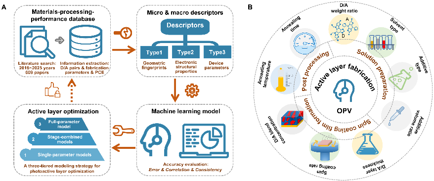 该研究通过构建标准化数据库与三层机器学习框架,成功实现了对有机光伏电池活性层制造参数的高维优化,是实验室在有机光伏与机器学习交叉领域的重要突破。该工作得到了国家自然科学基金等项目的支持。
