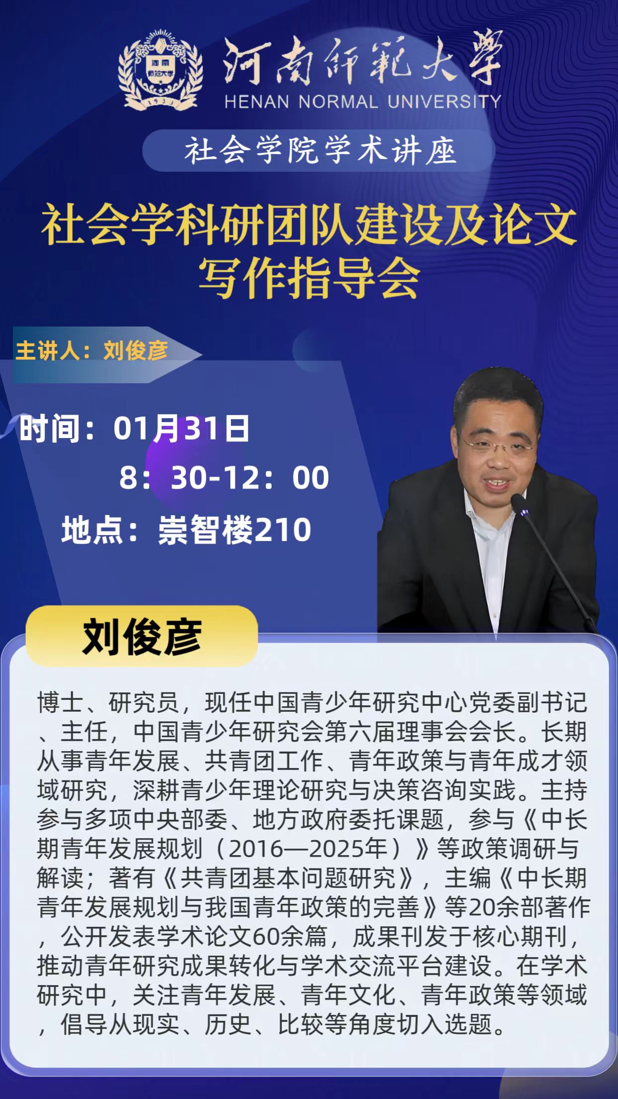 刘俊彦:社会学科研团队建设及论文写作指导会