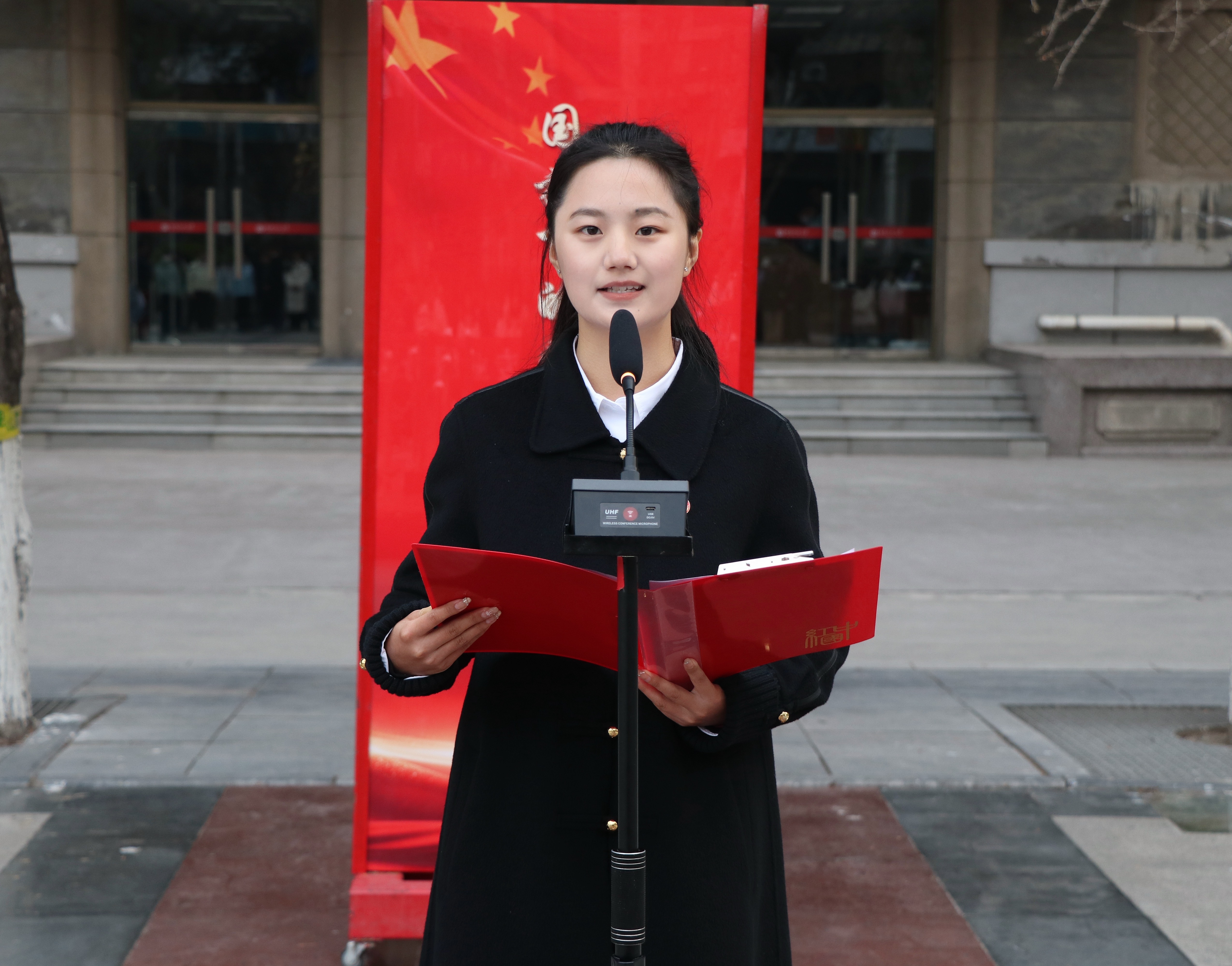 2025级社会学类本科生刘星邑发表国旗下的演讲。她以“龙马精神”为题,围绕“破局、从容、同行”三个关键词展开分享,勉励同学们走出舒适圈,在探索中沉淀自我,在喧嚣中涵养从容,在时代中找准航向。