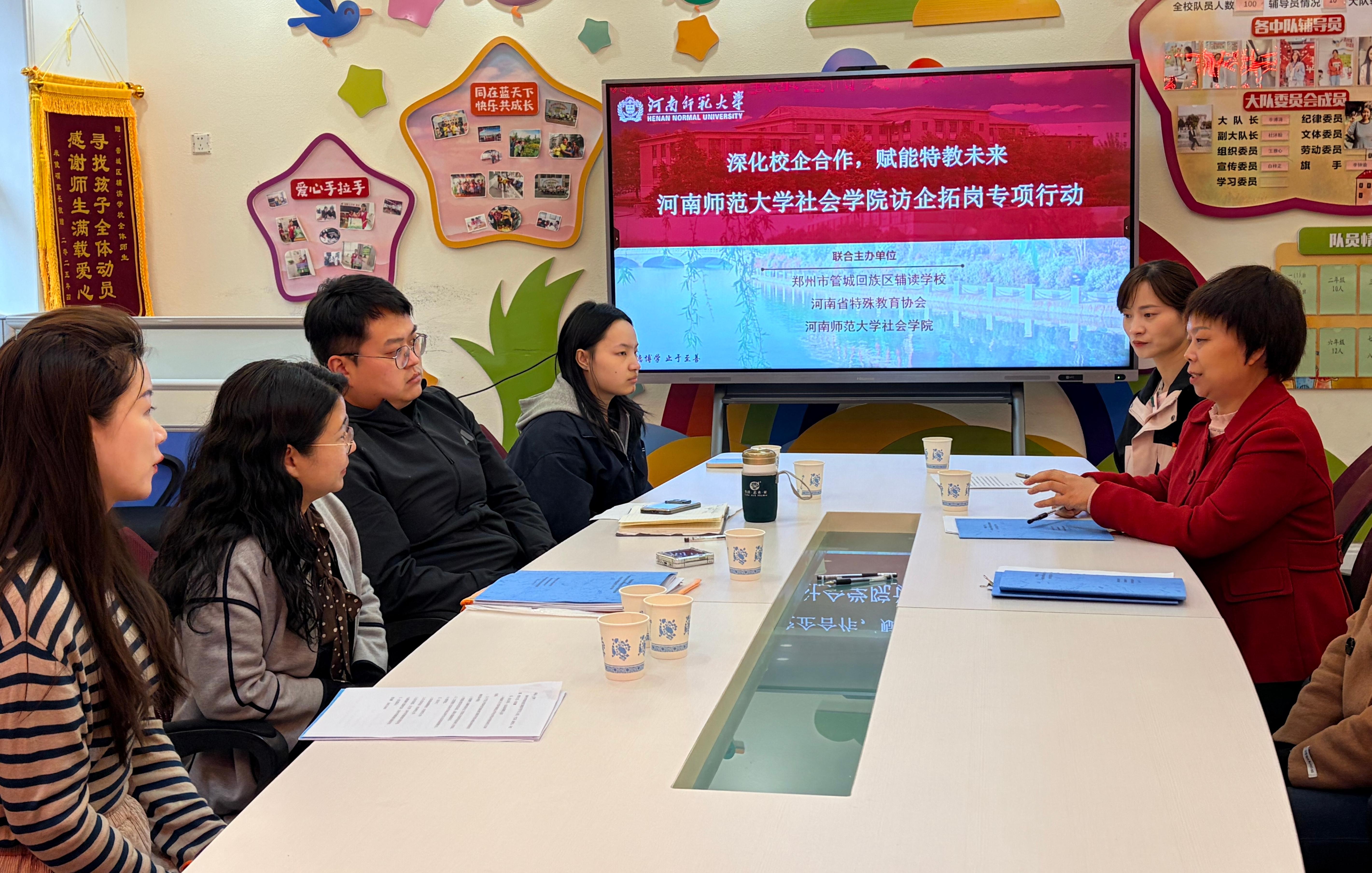 为深入贯彻落实教育部“访企拓岗促就业”专项行动部署,精准对接特殊教育领域人才需求,拓宽毕业生就业渠道,4月8日,社会学院组织专业骨干教师团队赴郑州市管城回族区辅读学校、河南省特殊教育协会开展访企拓岗活动。
