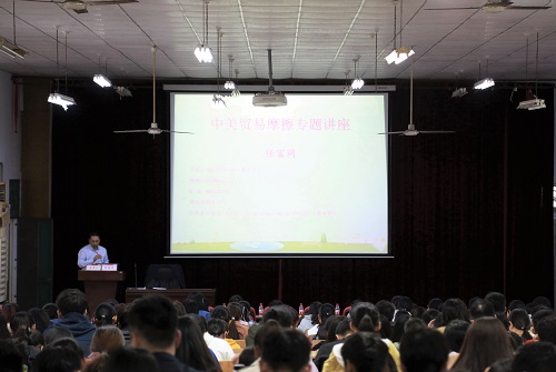 讲座结束后,任富同与在场学生进行交流探讨,并针对提出的问题进行了耐心细致的解答。他新颖的观点、独特的见地、生动的语言,不仅引导在场学生对中美贸易间的问题有了更进一步的理解,同时对提高学生的政治敏锐性和观察力大有裨益。