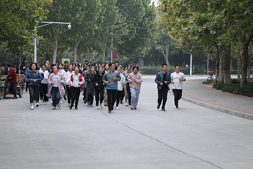 会上,梁作振对2018级学生进行跑前动员,他表示,早操为学生搭建了一个强健体魄的平台,今天是开学第一跑,以后也要坚持不懈,加强身体锻炼,不断磨炼意志,快乐学习、乐观生活,要以勤勉向上、永攀高峰的姿态面对学习、面对人生,以时不我待、只争朝夕的精神投入社会、投入未来。在梁作振、田嘉玺、王辉的动员带领下,2018级学生一同进行了跑操。学生们带着饱满的热情、响亮的口号、整齐的步伐,迸发着奋斗的活力。他们纷纷表示,生命不息,运动不止,今后定会在操场上、阳光下陶冶身心、健康成长。