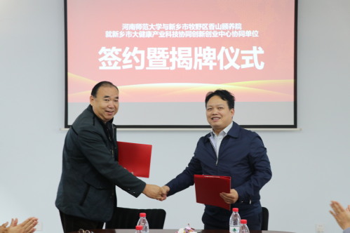 10月22日上午,我院作为新乡市大健康产业协同创新创业中心健康养老分中心分别与新乡市牧野区香山颐养院、新乡市牧野区建工老年护养院签订协同单位暨专业学位研究生实践基地的合作协议,并分别在两个协同单位成功举行了挂牌仪式。新乡市大健康产业科技协同创新创业中心副主任田小勇、我院党委书记魏雷东、健康养老分中心主任张晨寒、香山颐养院理事长魏锡山、建工老年护养院院长周兰香等领导与相关工作人员出席了挂牌仪式。