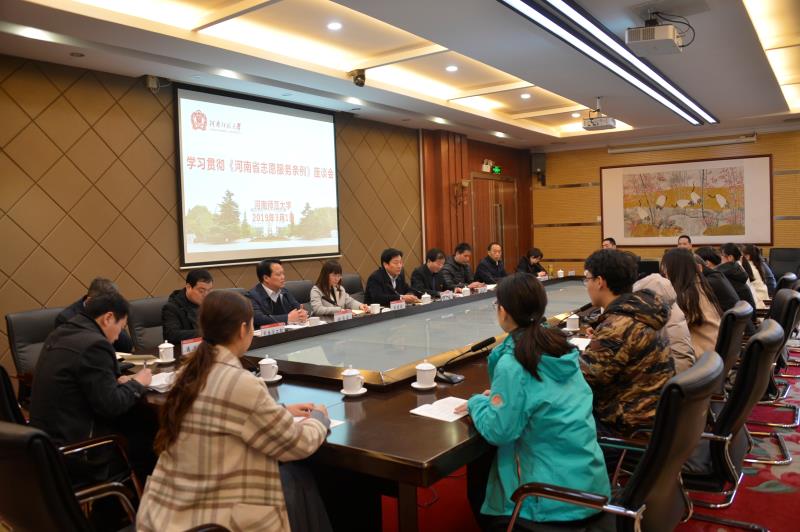 3月1日下午,我校学习贯彻《河南省志愿服务条例》座谈会在勤政楼第三会议室召开。党委副书记陈广文出席,党委常委、宣传部部长聂立清主持,新乡市文明办、校文明委成员单位和公益社团负责人、师生代表40余人参会。