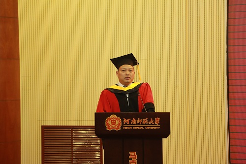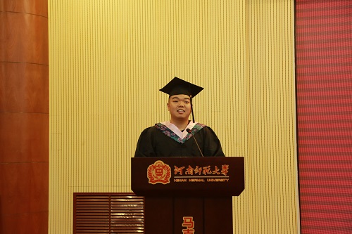 毕业生代表2015级劳动与社会保障班潘鑫回顾一路走来的大学时光,表达对母校与学院的不舍、对老师的感谢、对同窗的难忘以及对未来的期待。
