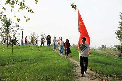 启动仪式在学院办公楼前举行。全体教职工在院旗指引下,集体沿东校区外环线一路参观了东湖、新建学生宿舍、在建综合实训大楼、沿河“网红”景观带、修葺一新的餐厅、现代化的综合教学楼等。一路走来,不少老师感慨还是第一次现场感受到学校近期在硬件建设方面取得的成绩。老师们一路欢声笑语,欣赏校园美景的同时,也感叹着学校新的变化,畅想着美好的未来。后山顶凉亭里,在章红梅老师带领下,大家齐唱革命歌曲《向前进》,向新中国成立70华诞献礼,铿锵的旋律、嘹亮的声音充分展现了学院全体教职工奋发有为的精神风貌。