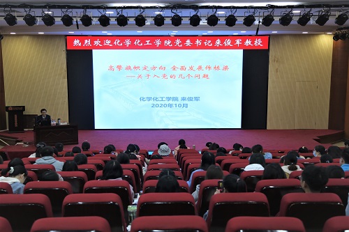 11月8日上午,我院分党校第三期入党积极分子培训班党课在东区思政平台进行,特邀化学化工学院党委书记来俊军教授担任主讲,师大附中、校医院、后勤管理处(后勤集团)、材料学院、马克思主义学院、新联学院与社会事业学院等7个单位共计120余名入党积极分子参与聆听。本次党课由学院党委书记瞿洪明主持。
