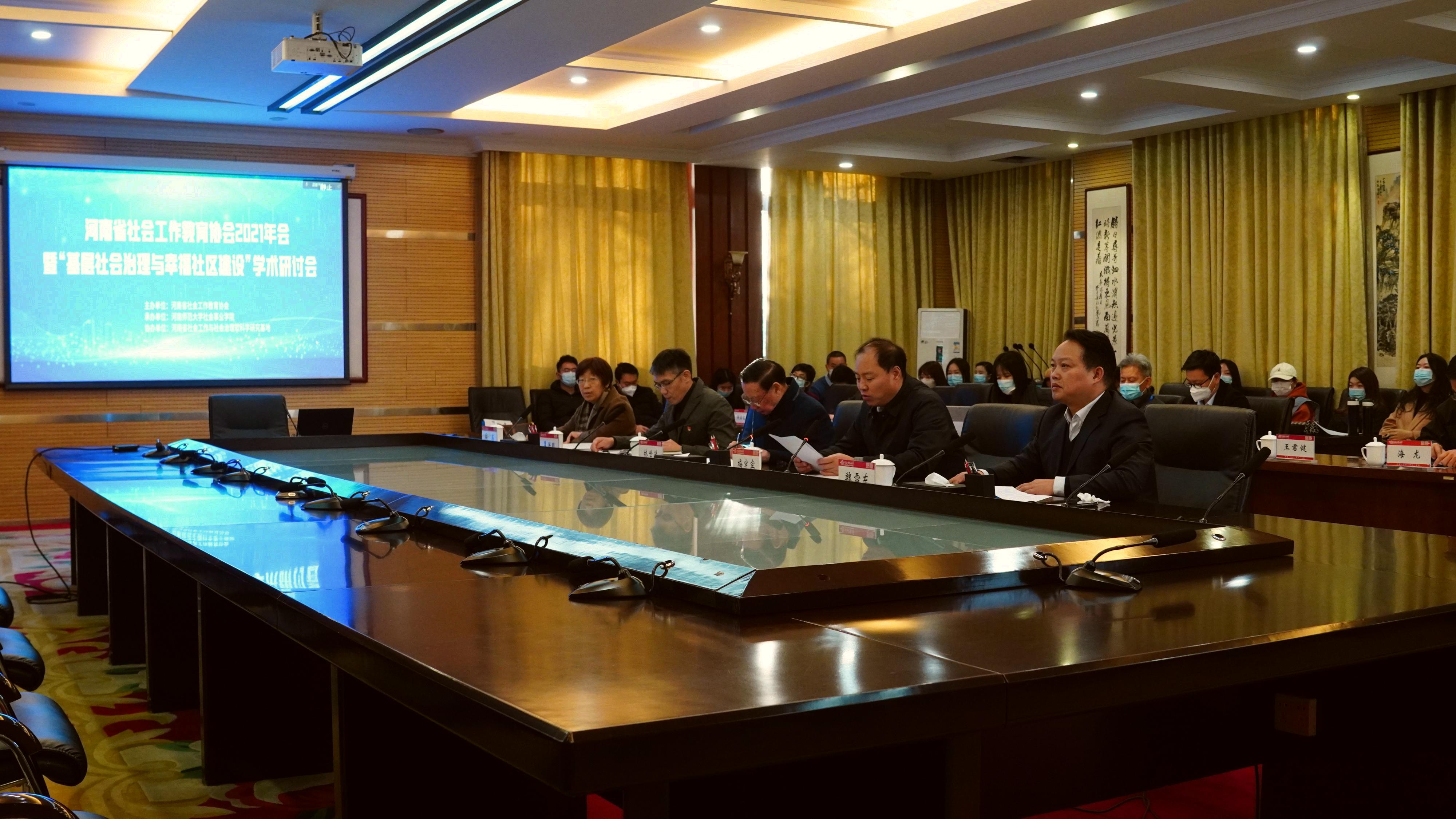 为深入贯彻习近平总书记提出的“发挥社会工作专业优势”,提升社会工作专业参与基层社会治理的能力,助力城乡幸福社区建设,12月5日,河南省社会工作教育协会2021年会暨“基层社会治理与幸福社区建设”学术研讨会在我校举办。中国社会工作教育协会常务副会长关信平,中国社会工作教育协会副会长马凤芝、陈树强,中国社会工作学会副会长李迎生,河南省社会工作教育协会会长林世选,河南师范大学党委副书记、工会主席梅宪宾,河南省社会工作教育协会副会长蒋美华,郑州社会工作协会会长张明锁,鹤壁市淇滨区社会治理和社区服务局局长元军平等参加了本次会议。河南省各高校300余名师生通过线上参会。河南省社会工作教育协会副会长、河南师范大学社会事业学院院长魏雷东主持开幕式。