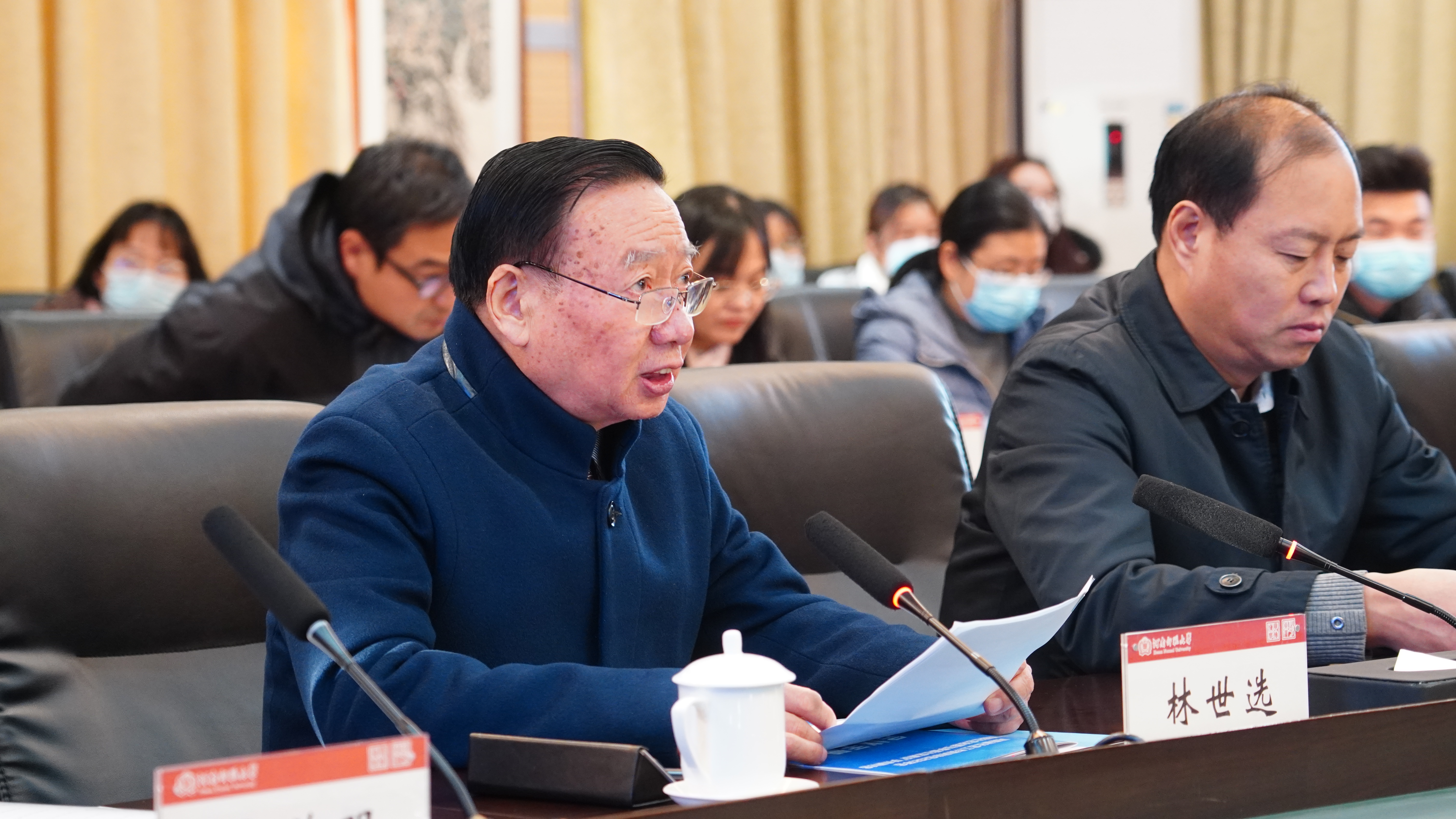林世选代表河南省社会工作教育协会致辞。他总结概括了近年来河南省社会工作协会开展的工作和取得的成就。他强调,社会工作者要认真学习贯彻党的十九届二中、三中、六中全会的精神,不断研究新形势,提供新支持,提高社会工作者的质量与规格。