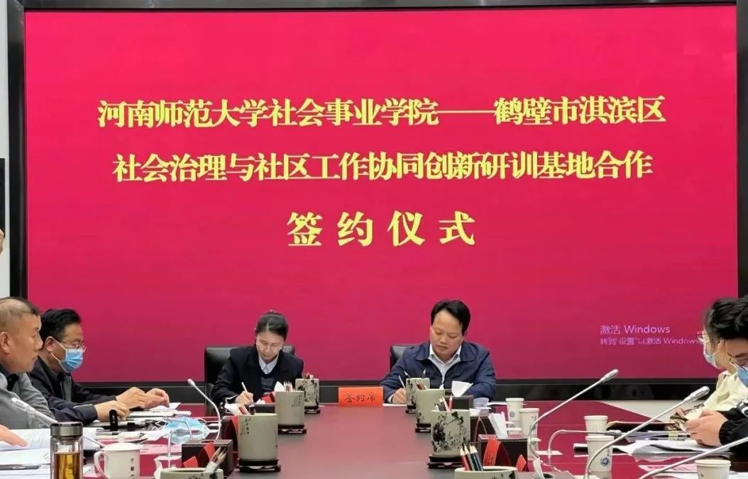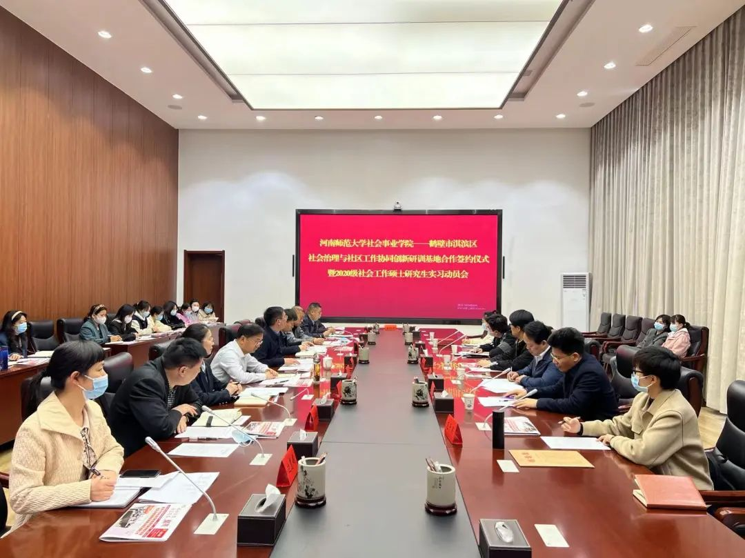 为推动社会工作专业参与基层社会治理,不断强化校地共建协同创新走实走深走新,3月9日上午,河南师范大学社会事业学院与鹤壁市淇滨区城市社会治理和社区服务局在淇滨区会务中心联合举行社会治理与社区工作协同创新研训基地合作签约仪式暨2020级社会工作硕士研究生实习动员会。